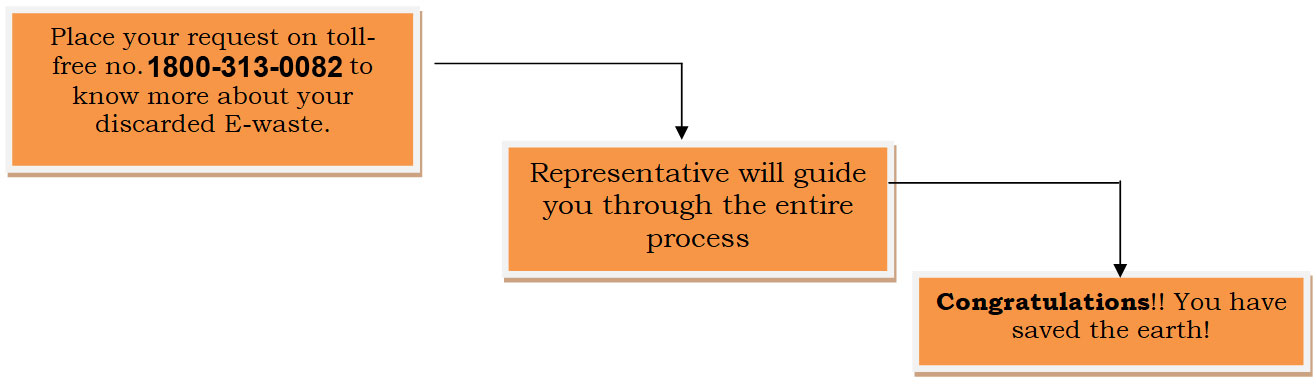Our E-Waste program starts with receiving E-Waste pickup request from our end customers through toll free number after which Deshwal Waste Management Pvt. Ltd who is our Authorized Recycler collects it and transports it to the collection centre. No fee is charged from the consumer for giving the goods for recycling and there is no monetary benefit included in the Recycling Program. The solo aim is to serve the Environment by keeping it clean.